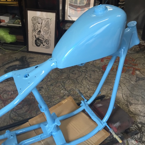 ちょっと前の続きから始めましょう〜!このタンクはアメリカのお客様のタンクです…ボーンフリーに間に合わせるために日本でペイントをしてアメリカに手荷物で持って行きました。
